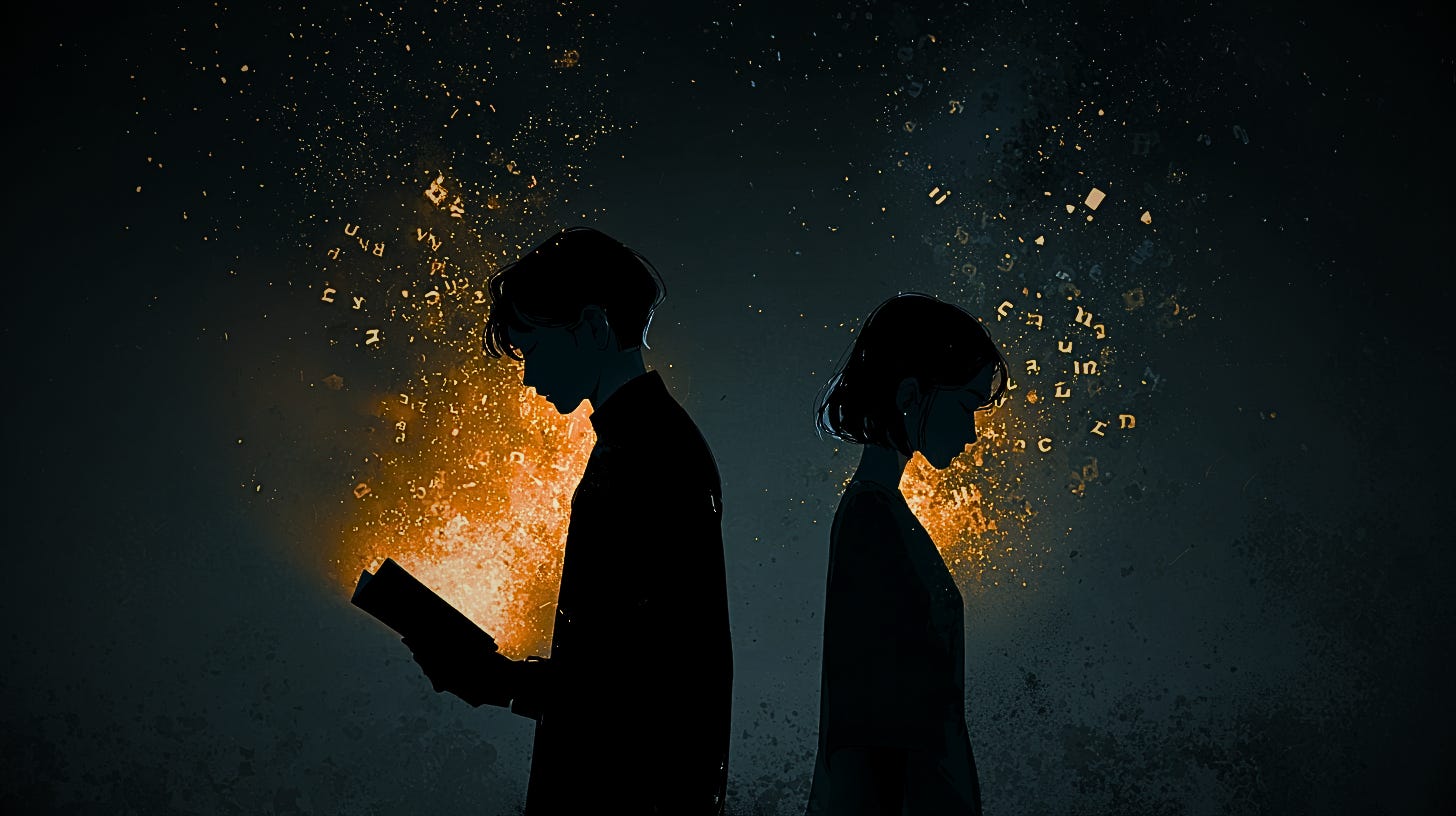 Ela queria a atenção que eu destinava aos livros. Eu entendo, faz sentido, nós éramos recém-casados, então o normal era que nós ficássemos mais juntos.